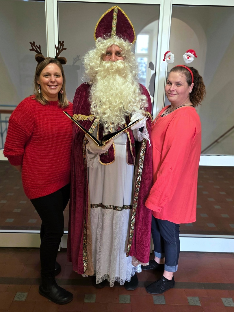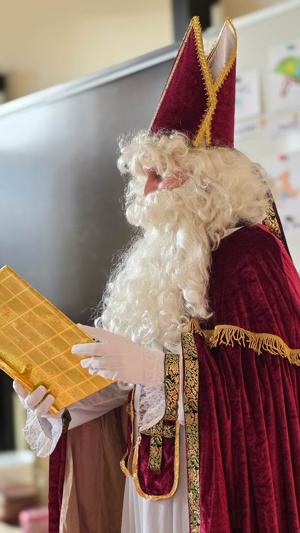 In diesem Jahr kam der Nikolaus schon am 05.12.2025 zur Grundschule Am Busch. Im Gepäck hatte er zwei zauberhafte Helferinnen. In jeder Klasse las er aus seinem goldenen Buch vor und verkündete den Kindern, was sie in dem vergangenen Jahr schon tolles geleistet hatten. Natürlich kam der Nikolaus nicht mit leeren Händen. Für alle Klassen gab es einen XXL-Stutenkerl mit wunderschöner Verzierung. Auch die Kinder haben sich vorbereitet und Gedichte, Lieder und Tänze für den Nikolaus einstudiert. Finanziert wurde die Aktion von unserem engagierten Förderverein.