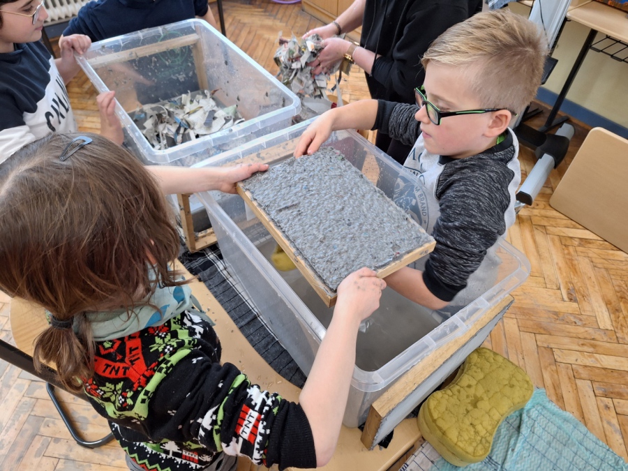 Papier selber schöpfen - Mini-Projekt der Drittklässler am 26.11.2024